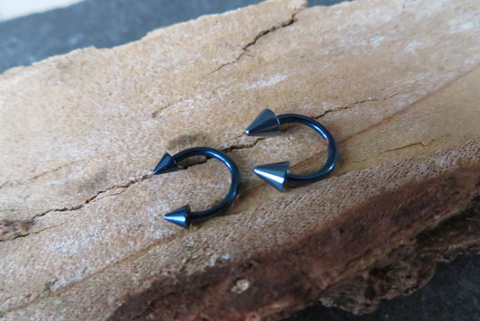 Dark Blue Titanium Ion Plated Spiked 16G Horseshoe Ring
