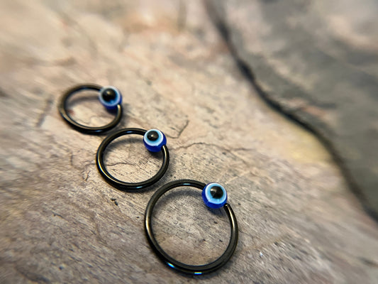 Evil Eye Black Titanium Ion Plated CBR Ring