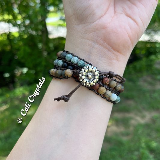 Matte Natural Stone and Leather Bracelet or Anklet Wrap
