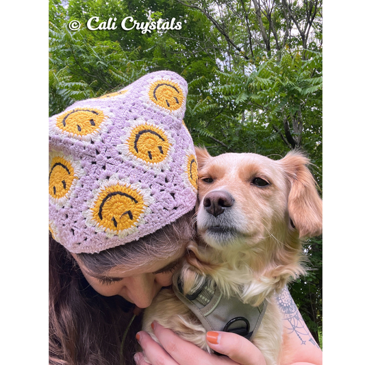 Retro Lilac Smiley Face Crochet Hair Bandana