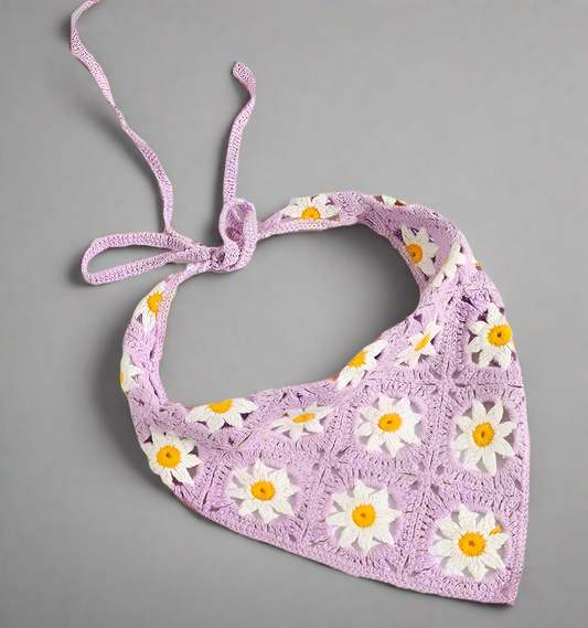 Vintage Style Lavender Purple Daisy Crochet Hair Bandana