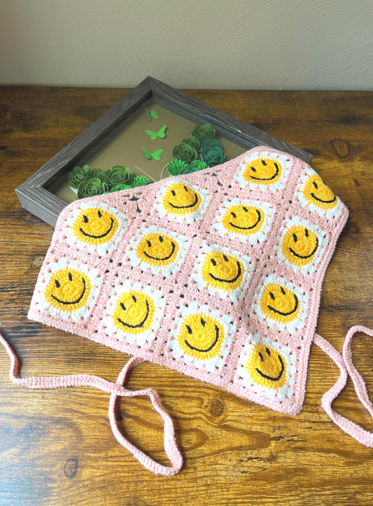 Retro Pink Smiley Face Crochet Hair Bandana