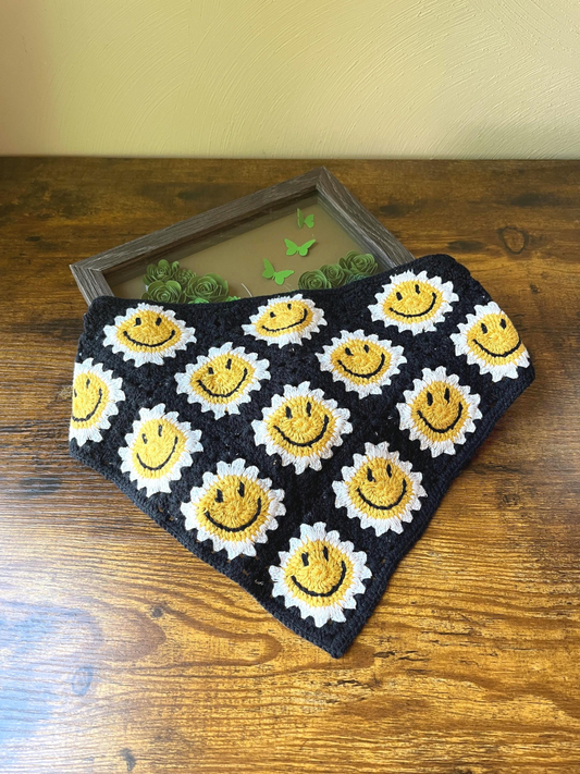 Retro Black Smiley Face Crochet Hair Bandana
