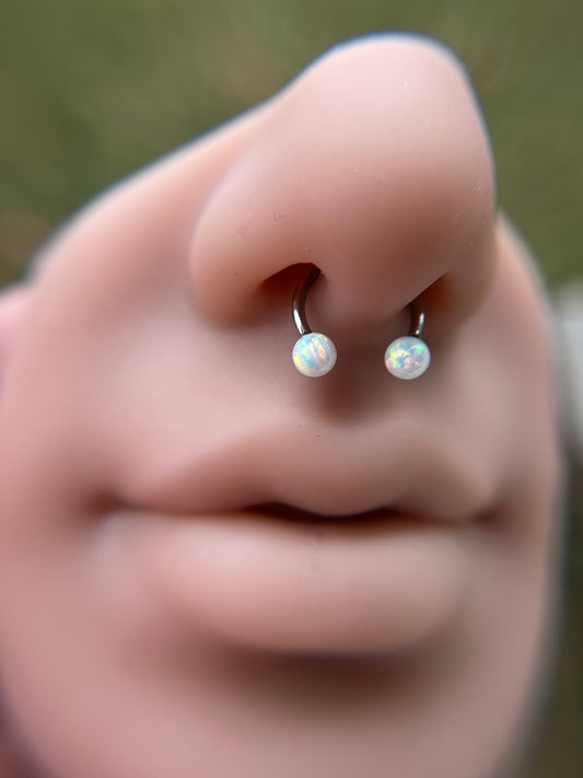 Fire Opal Internally Threaded Implant-Grade Titanium Horseshoe Ring