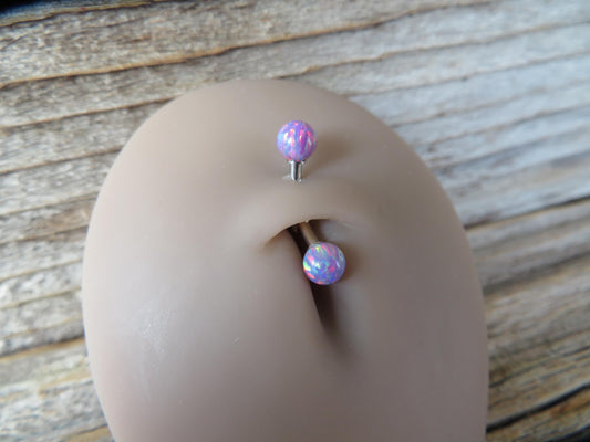 Lavender Purple Fire Opal Internally Threaded Steel or Titanium 14G Belly VCH Barbell