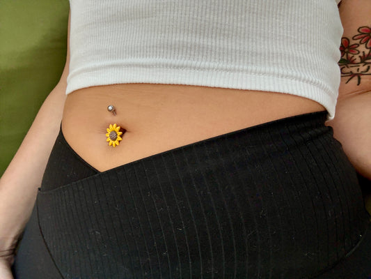 Sunflower Enameled Stainless Steel Boho Belly Ring