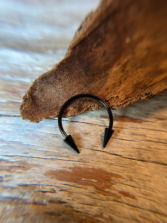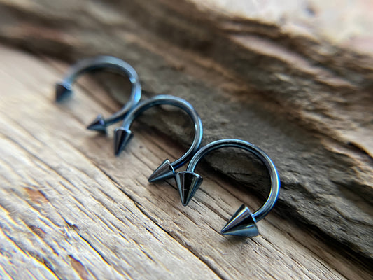 Large Diameter Size Options Black Titanium Plated 16G Horseshoe Ring with Long Spikes