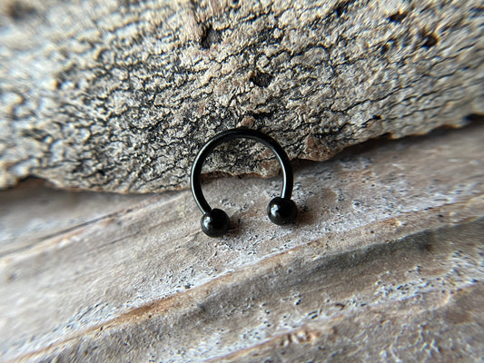 Tiny Balls or Spikes Black Titanium Ion Plated 18G Horseshoe Ring