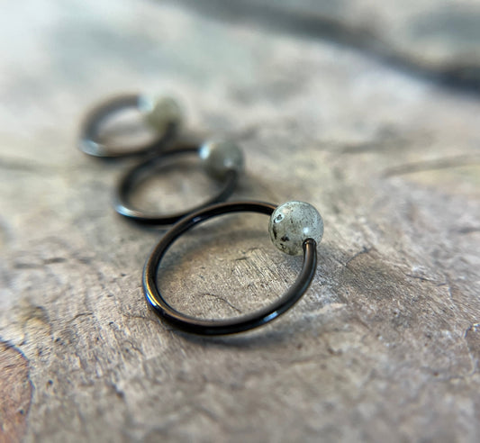 Labradorite Natural Stone Black Titanium Ion Plated CBR Ring