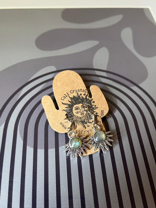 Labradorite Natural Stone Aztec Sun Earrings