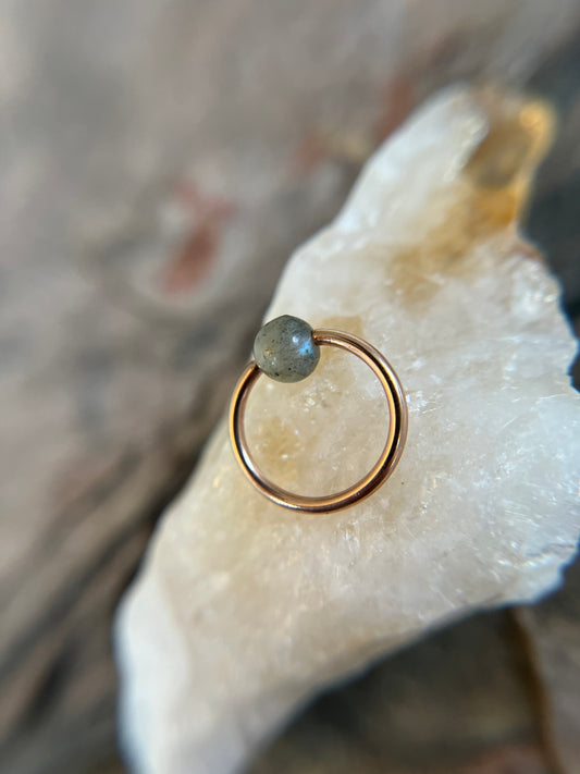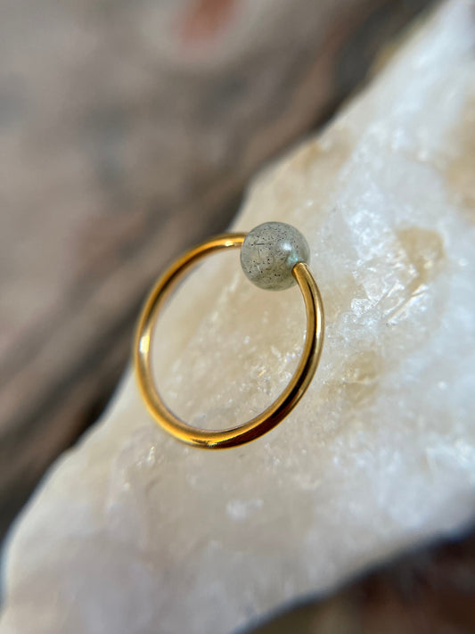 Labradorite Natural Stone Surgical Steel CBR Ring