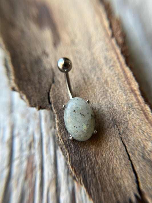 Labradorite Natural Stone Pronged Oval Belly Ring 316L Surgical Steel