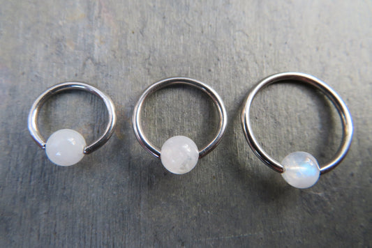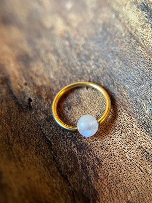 Moonstone Natural Stone ASTM F-136 Implant Grade Titanium CBR Ring