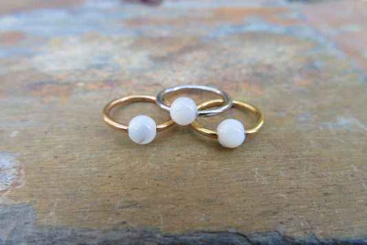 Mother of Pearl Natural Shell Surgical Steel CBR Ring