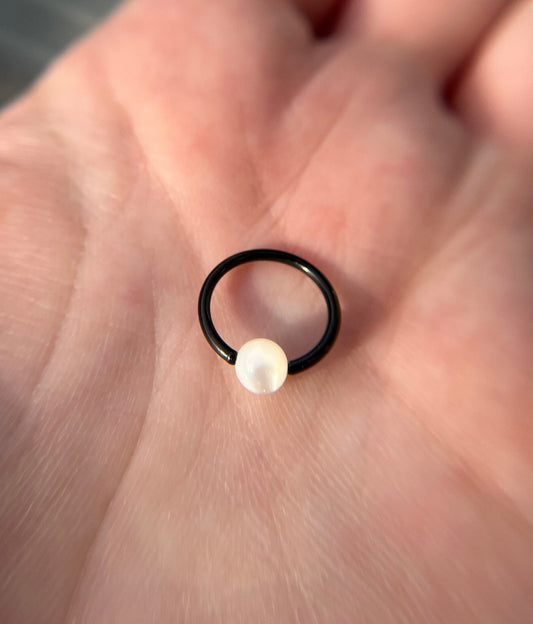 Mother of Pearl Natural Shell Black Titanium Ion Plated CBR Ring