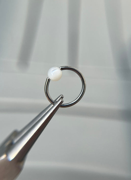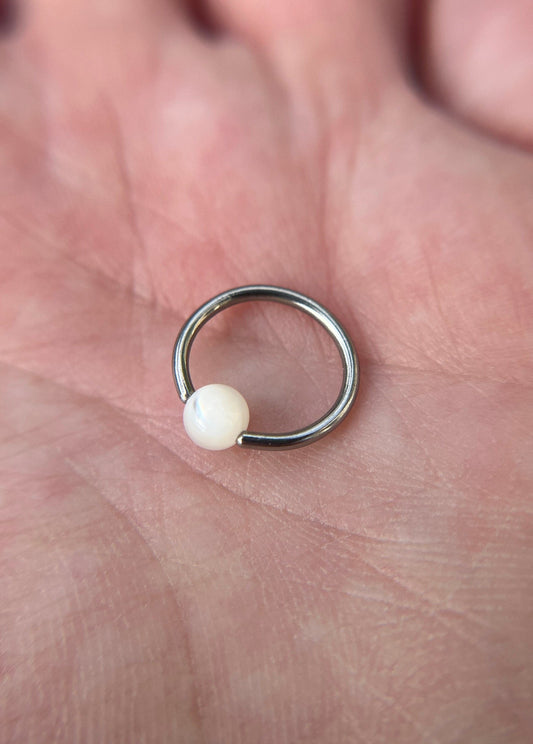 Mother of Pearl Natural Shell ASTM F-136 Implant Grade Titanium CBR Ring