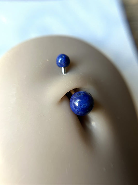 Lapis Lazuli Natural Stone 14G Surgical Steel Curved Barbell