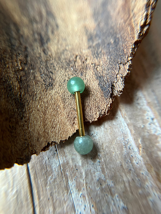 Green Aventurine Natural Stone Gold Titanium Ion Plated Tongue Nipple Barbell