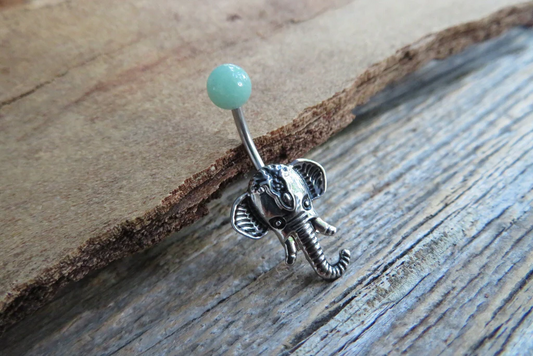 Green Aventurine Natural Stone Ganesha Elephant Belly Ring