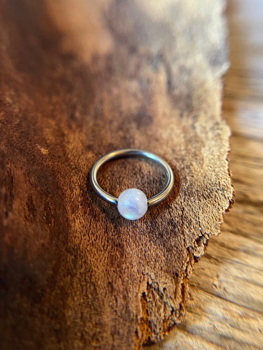 Moonstone Natural Stone Surgical Steel CBR Ring