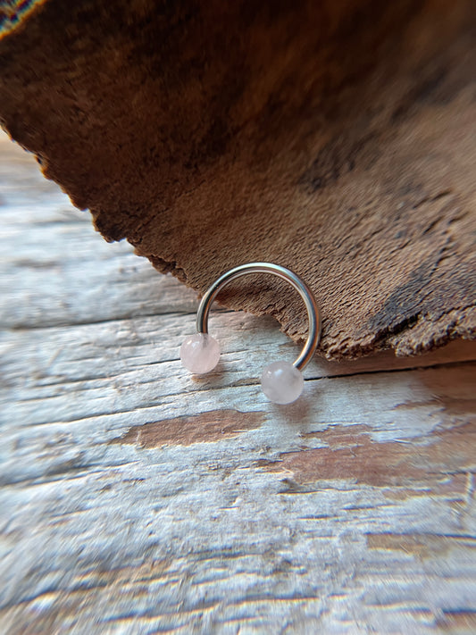 Rose Quartz Natural Stone 316L Surgical Steel Horseshoe Ring