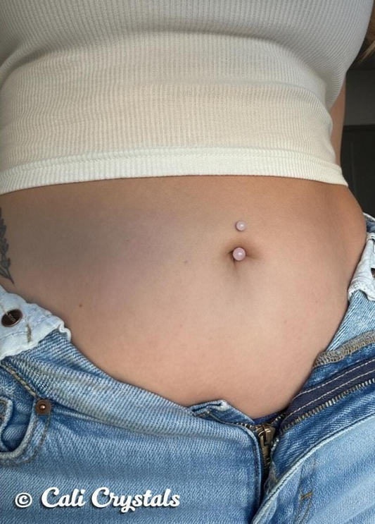 Rose Quartz Natural Stone Internally Threaded Belly or VCH Barbell