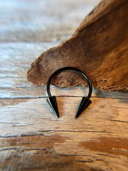 Black Titanium Ion Plated 14G Spiked Horseshoe Ring