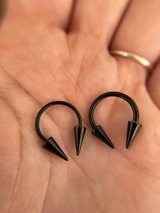 Black Titanium Plated Pick Your Spike Length 16G Horseshoe Ring