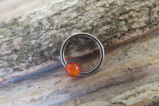 Carnelian Natural Stone Surgical Steel CBR Ring