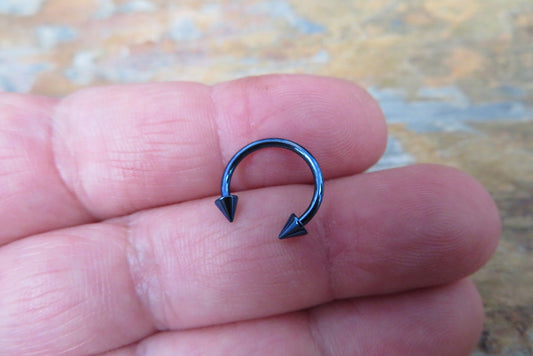 Dark Blue Titanium Ion Plated Spiked 16G Horseshoe Ring