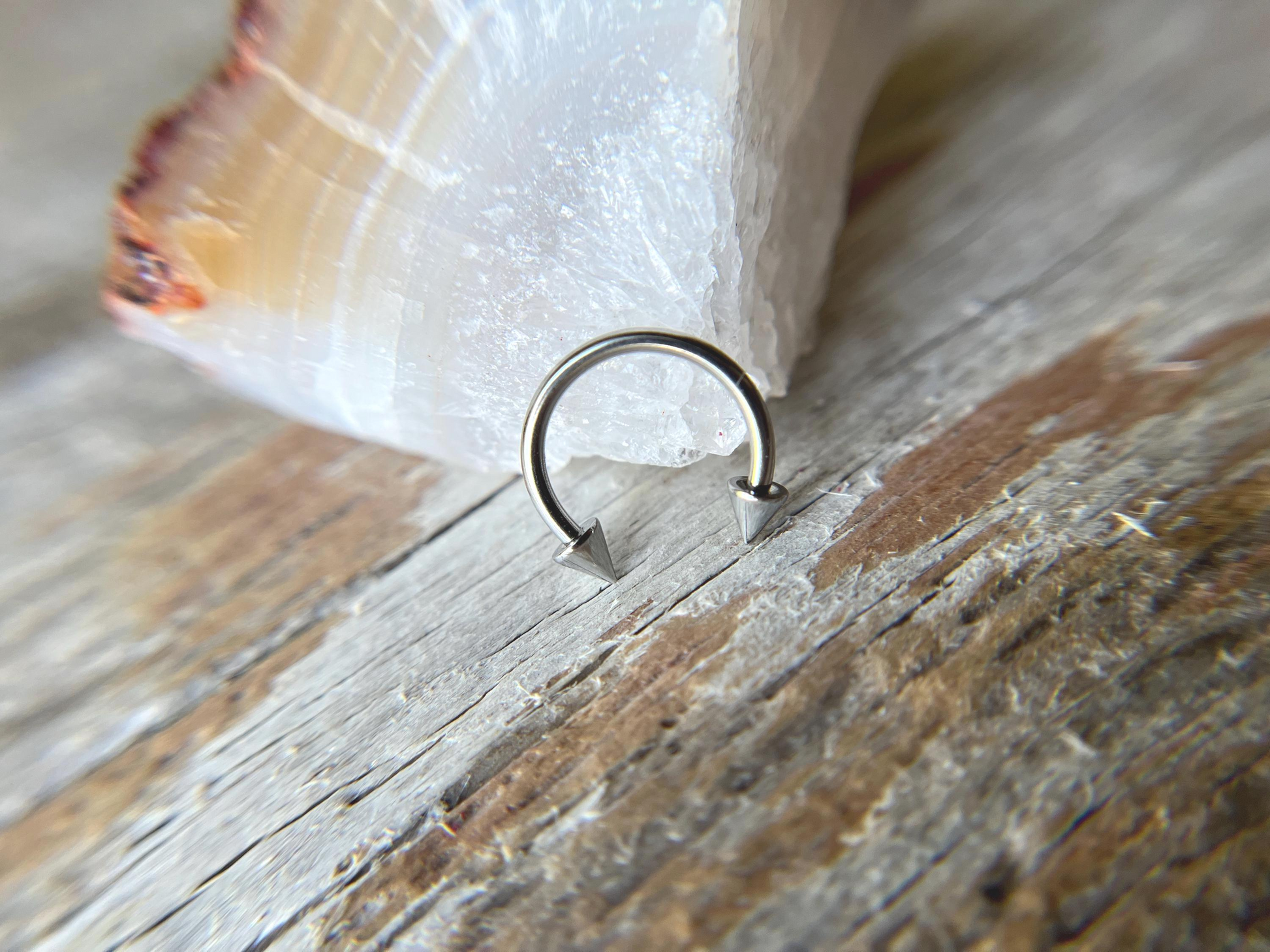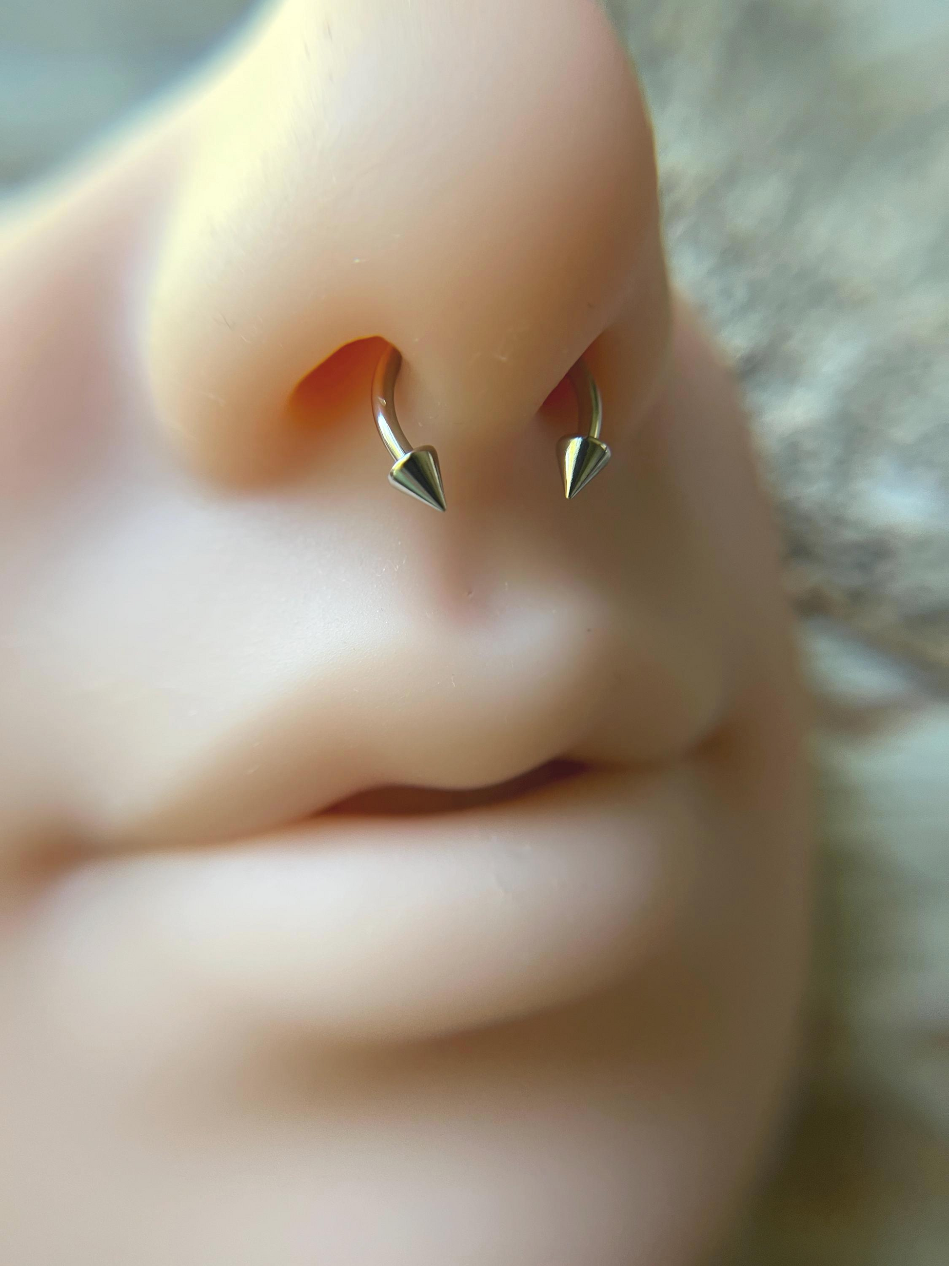 Materials: Hypoallergenic 100% 316L surgical steel externally threaded horseshoe ring and spikes. This piece is completely waterproof, and a great choice for everyday wear!