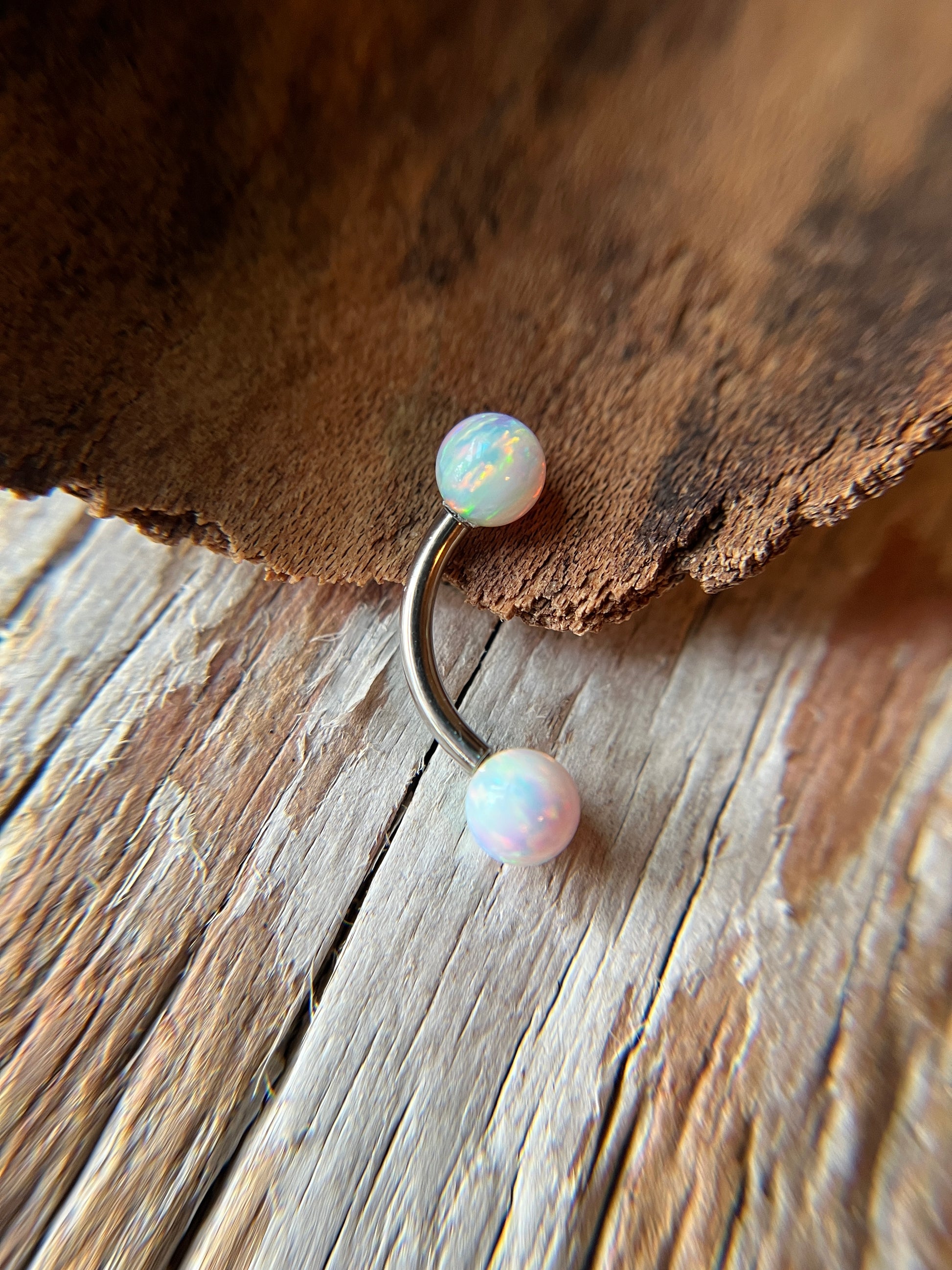 Aurora White Fire Opal Internally Threaded Gold, Rose Gold or Black 14G Belly VCH Barbell