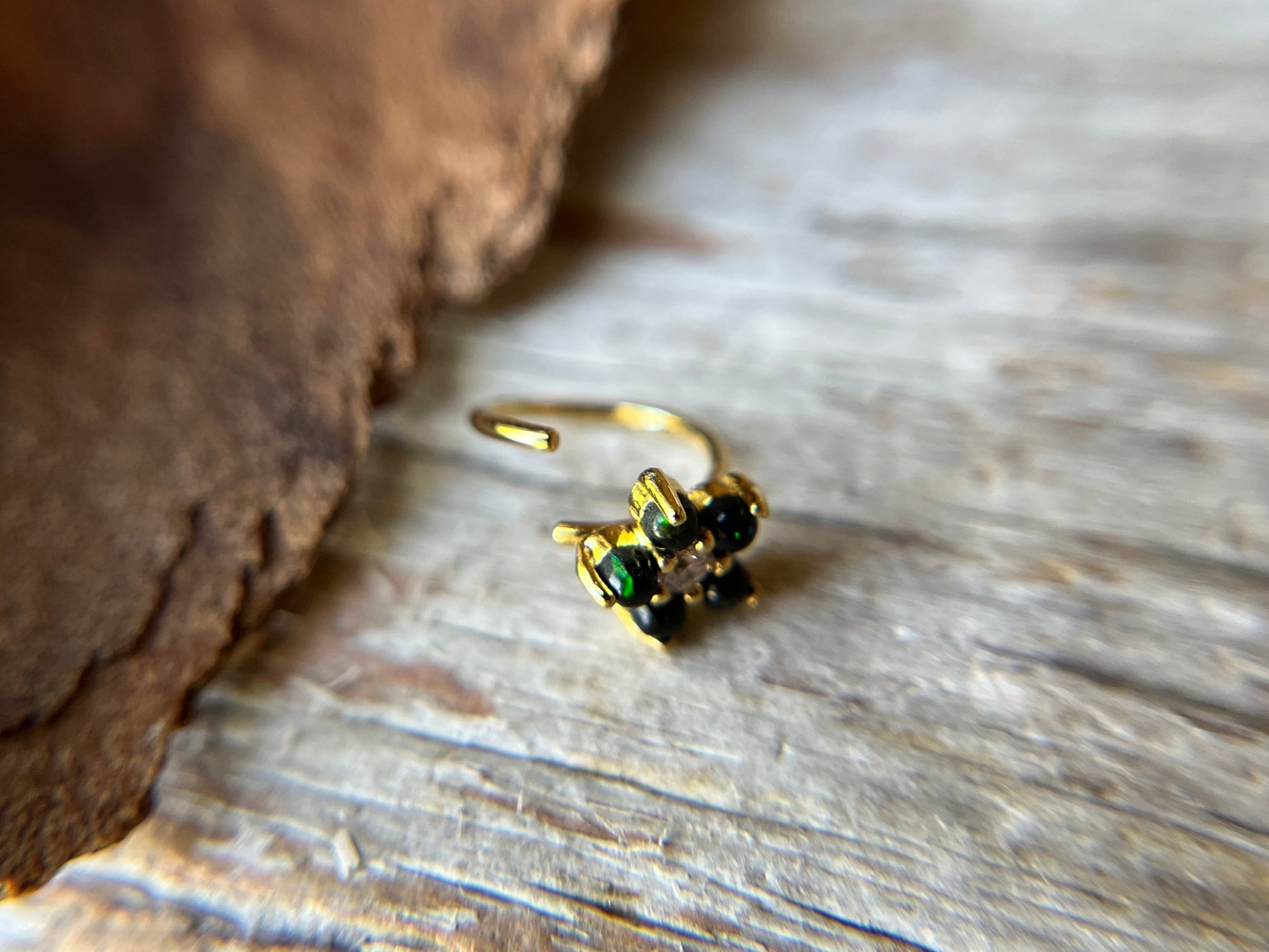 Black Fire Opal Flower 20G Gold Titanium IP Nose Hoop