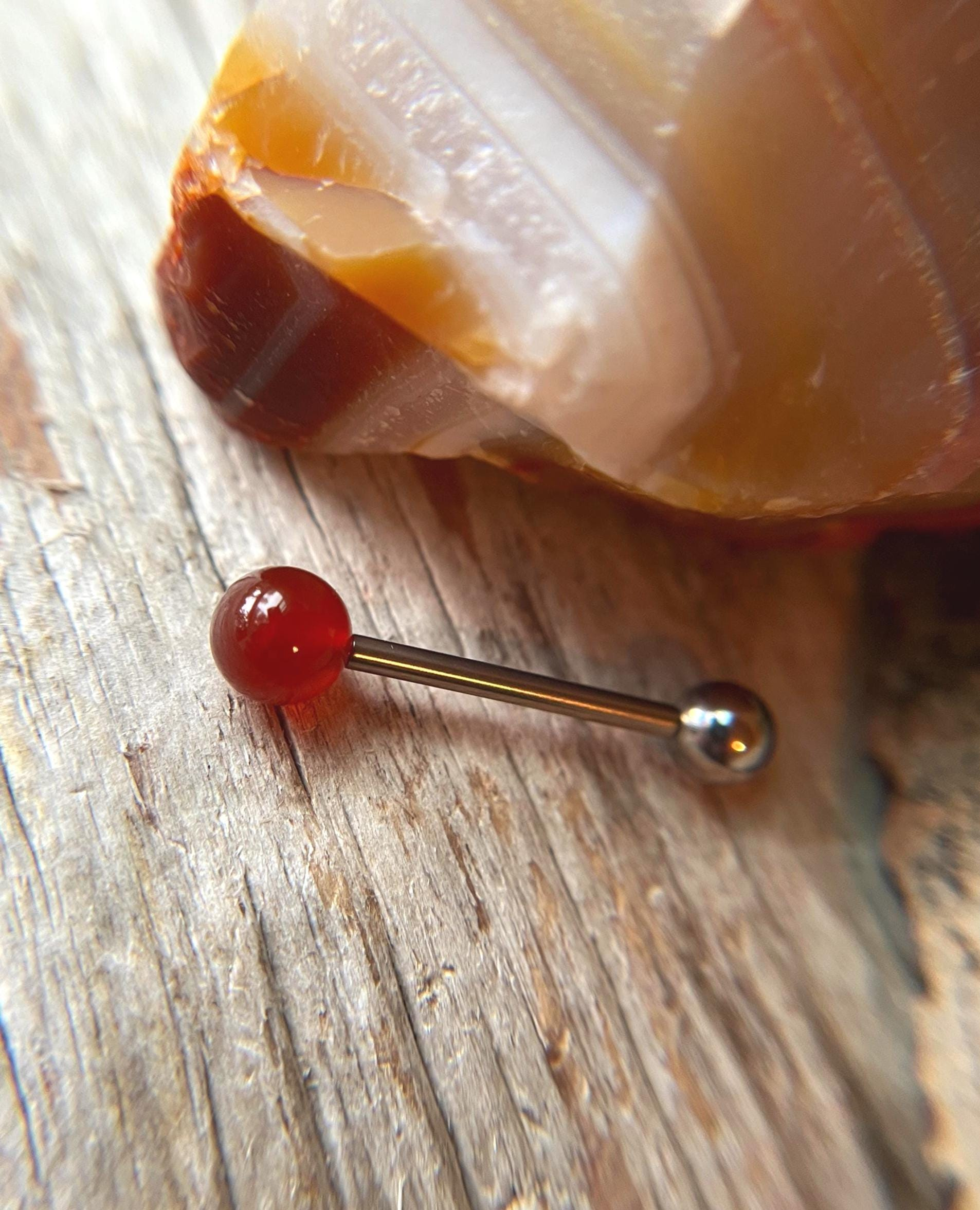 Carnelian Natural Stone Internally Threaded Titanium Tongue Piercing Barbell
