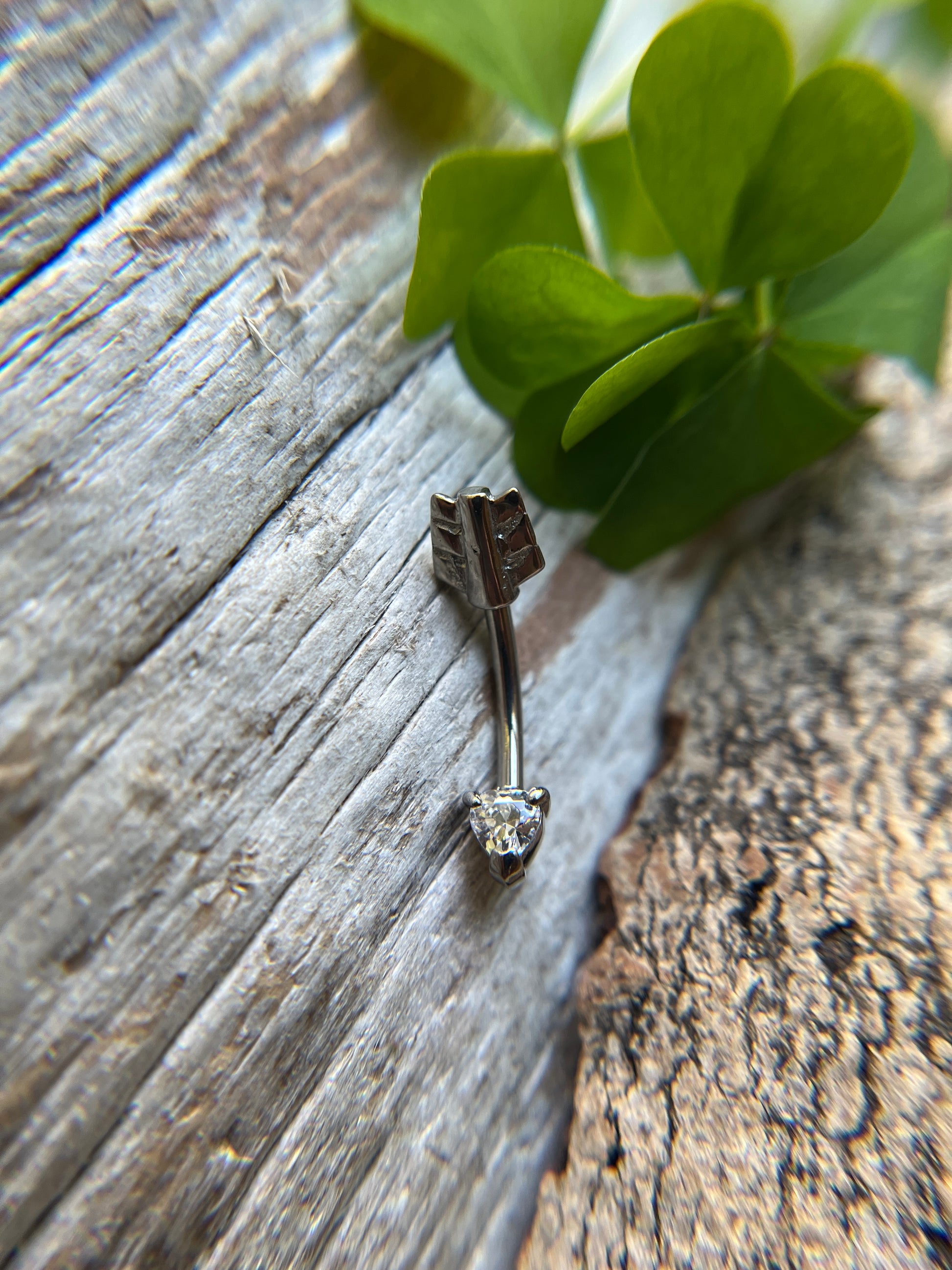 Heart Arrow Pronged Crystal Gem 16G Curved Barbell 100% Surgical Steel