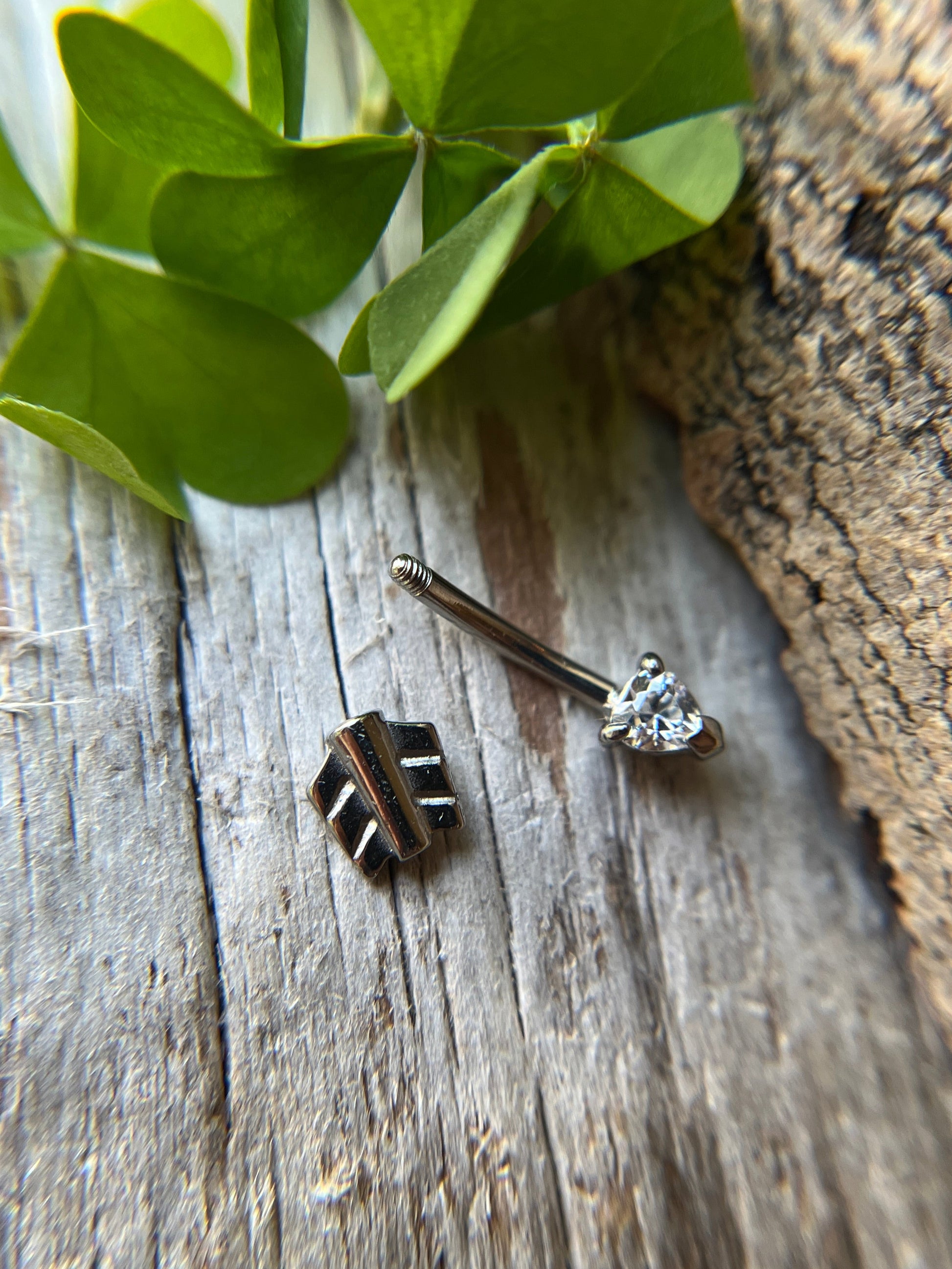 This piece can be used for a variety of 16 gauge (1.2mm) piercings including rook, eyebrow, tragus, helix, cartilage, daith etc.