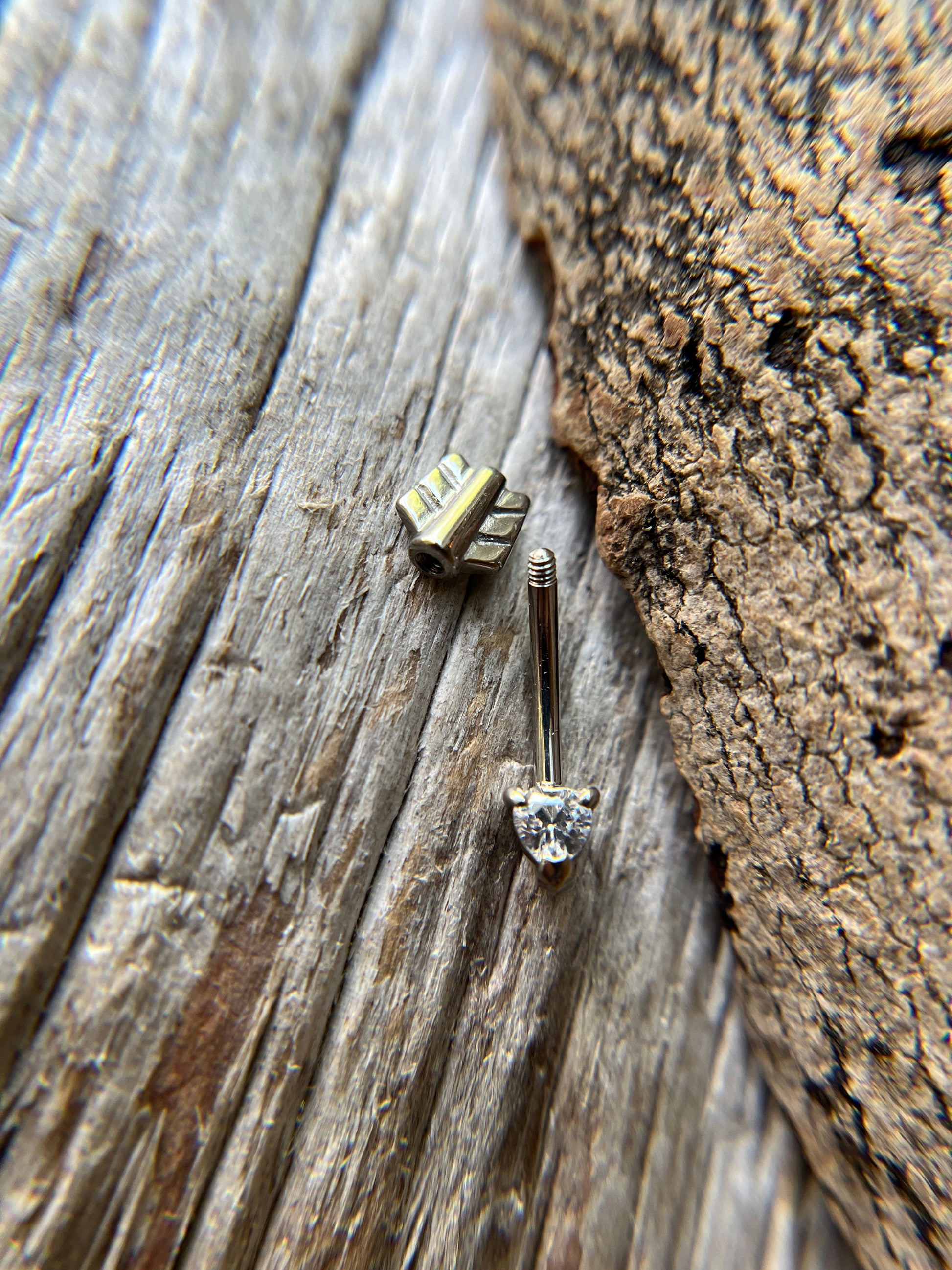 Always be gentle with your barbell when you are twisting on the arrow end, so that you do not accidentally strip the threading by over-tightening it. If you continue twisting the arrow end past the point where it reaches a soft, natural stopping place at the end of its threading, you will most likely damage your jewelry.