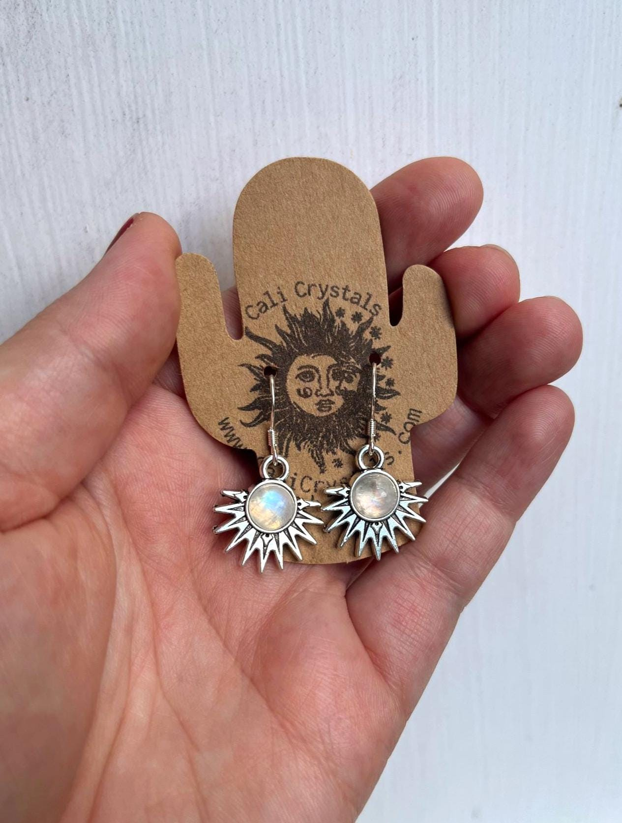 Moonstone Natural Stone Aztec Sun Earrings