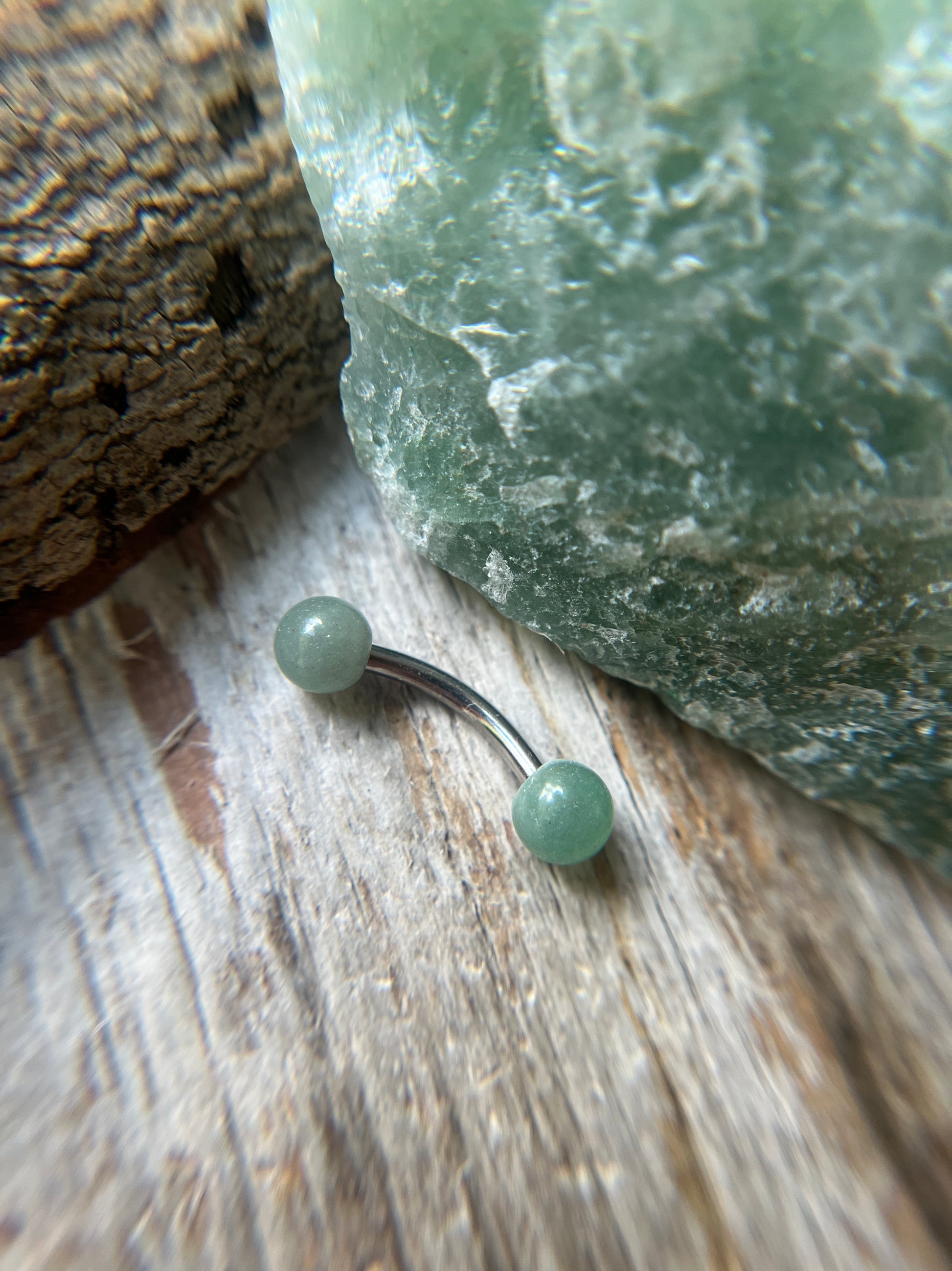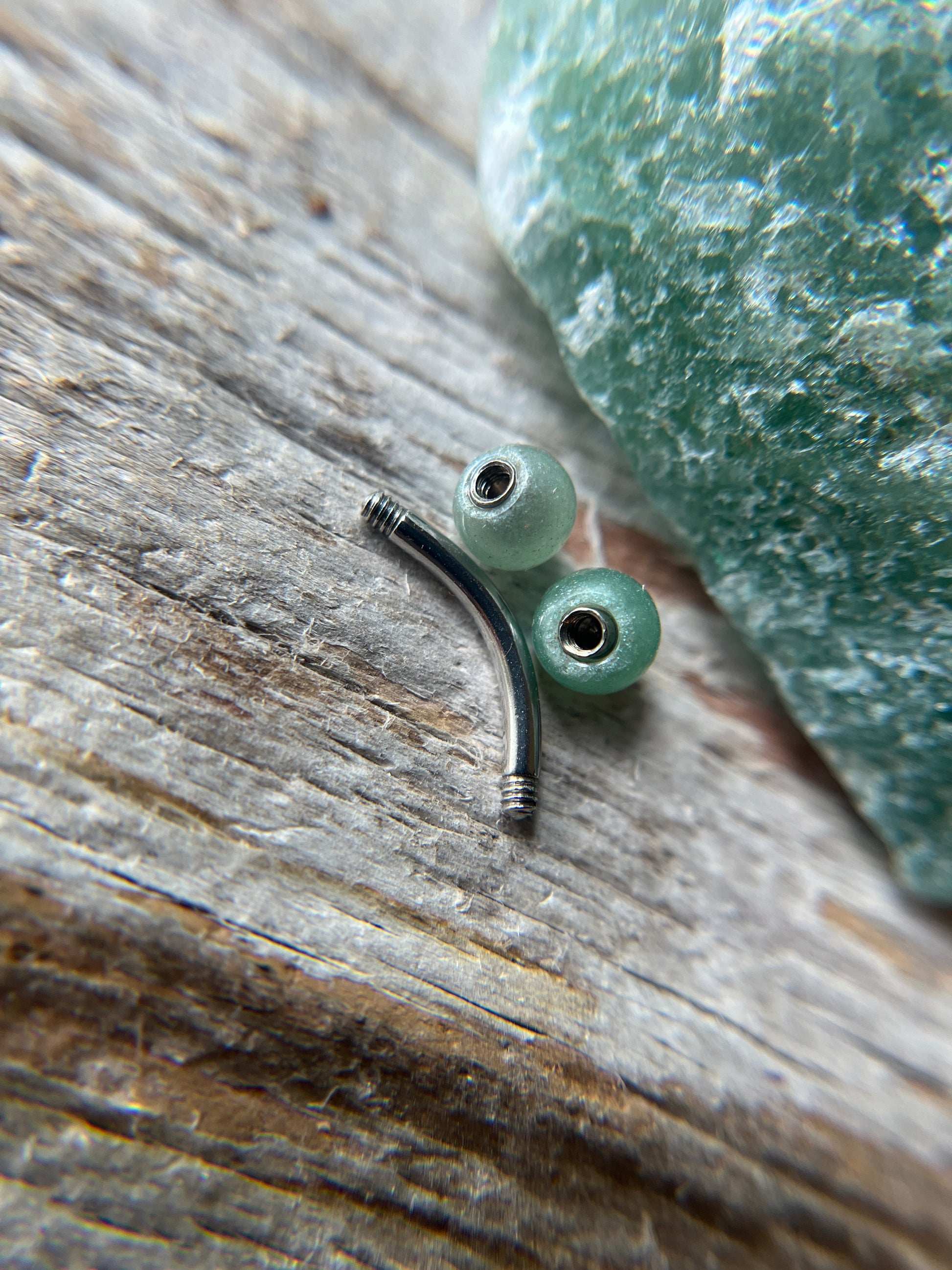 Green Aventurine Natural Stone ASTM F-136 Implant Grade Titanium 14G Curved Barbell