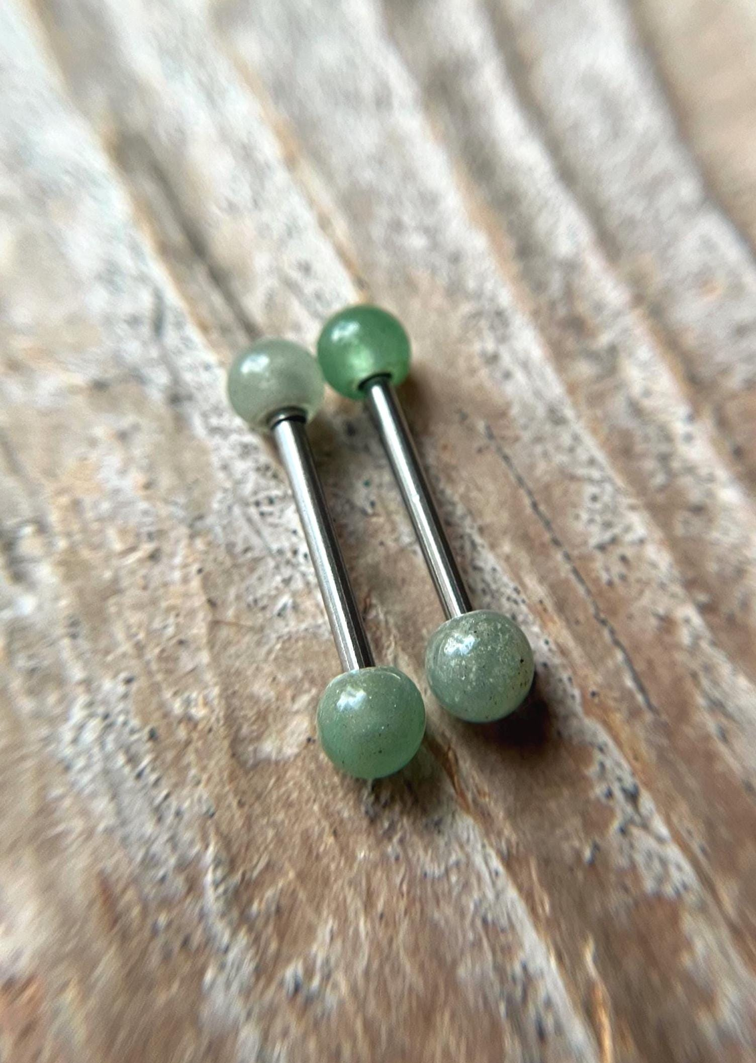 Green Aventurine Natural Stone 316L Surgical Steel Tongue Nipple Barbell