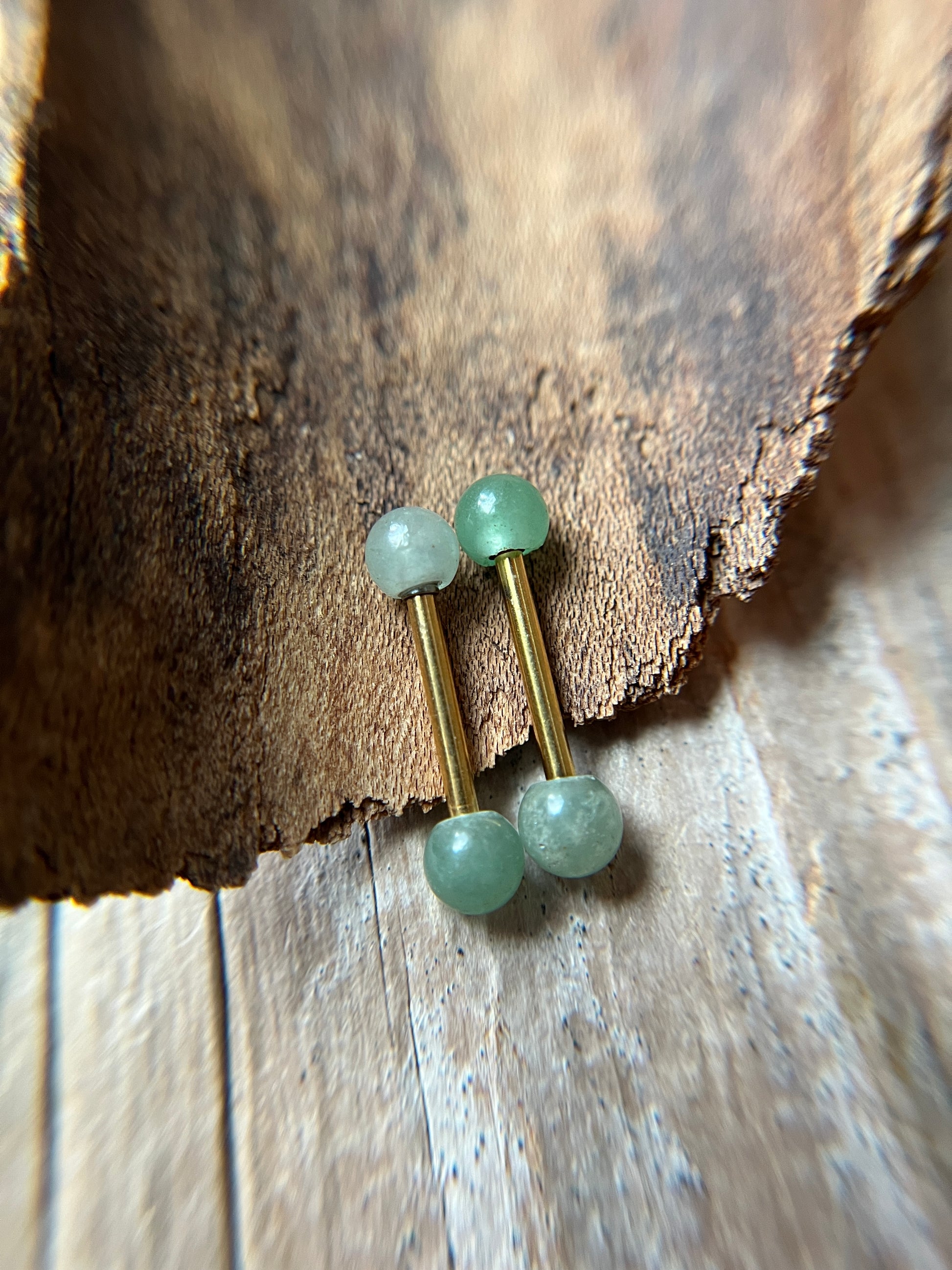 Always be gentle with your barbell when you are twisting on the natural stone balls, so that you do not accidentally strip the threading by over-tightening them. If you continue twisting the stone balls past the point where they reach a soft, natural stopping place at the end of their threading, you will most likely dislodge them and damage your jewelry.Β
