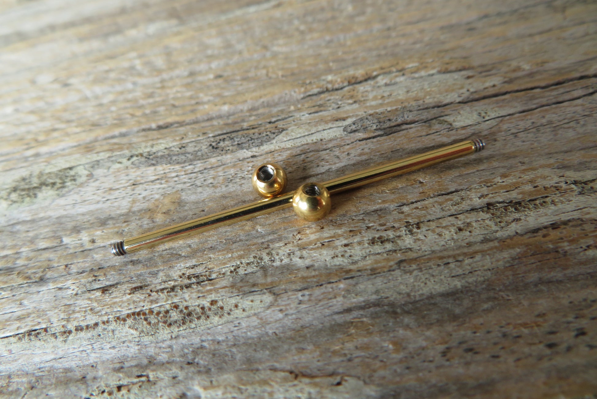 Materials: Solid 316L surgical steel (externally threaded) bar and ball endings with an optional gold or rose gold titanium alloy ion plated finish.