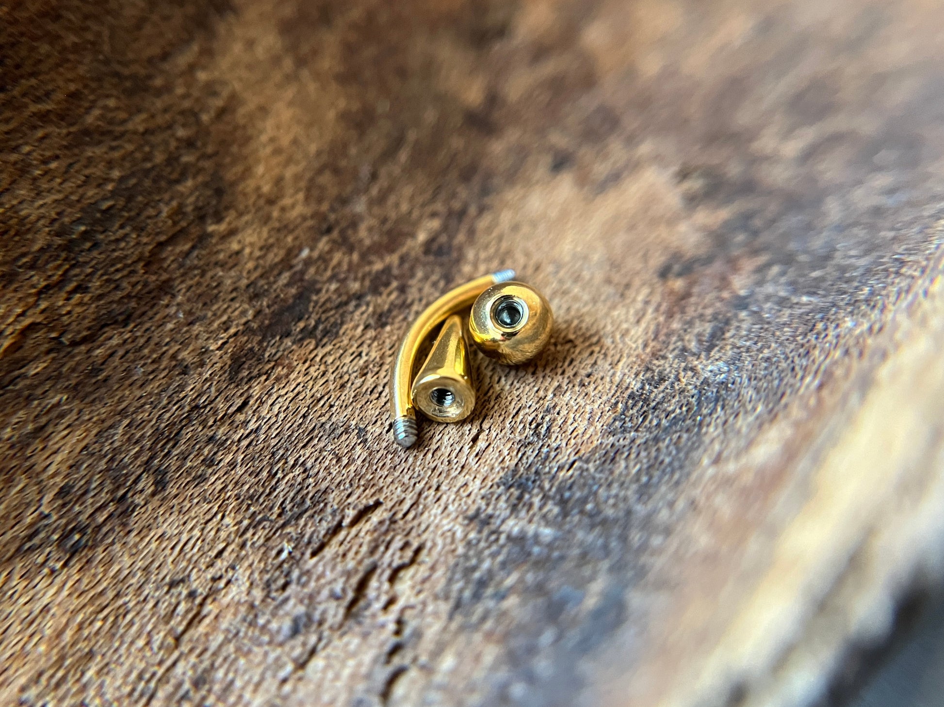 Always be gentle with your barbell when you are twisting on the spike and ball endings, so that you do not accidentally strip the threading by over-tightening them. If you continue twisting the ball or spike past the point where they reach a soft, natural stopping place at the end of their threading, you will most likely damage the jewelry.
