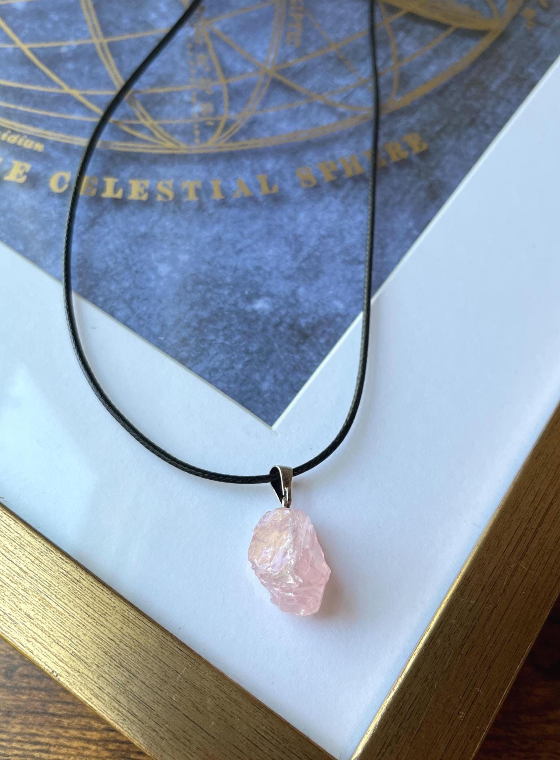 Raw Rose Quartz Natural Stone Pendant Necklace