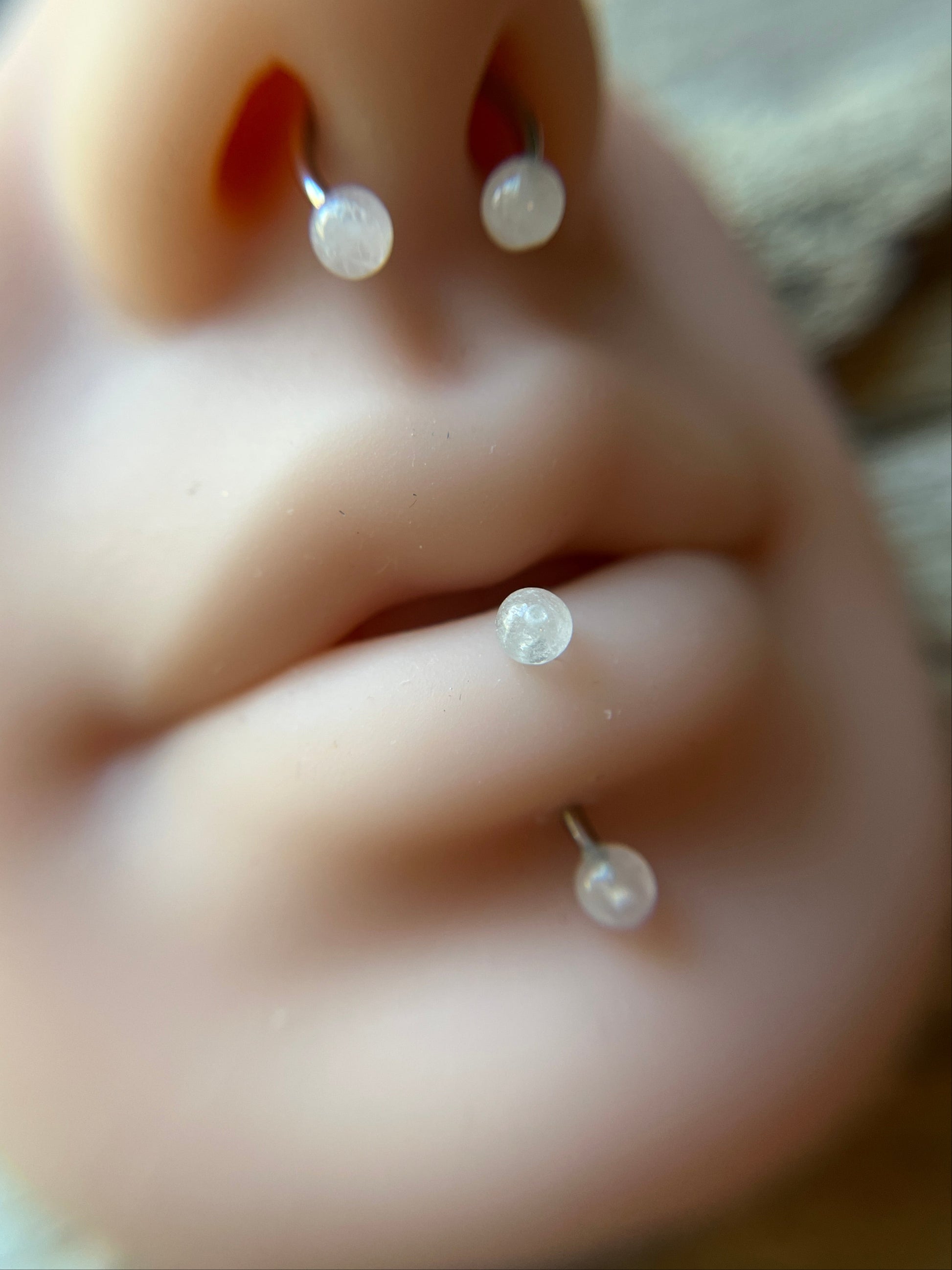 These curved barbells can be used for most 16G piercings including vertical lip, rook, cartilage, daith, tragus, helix, eyebrow etc.