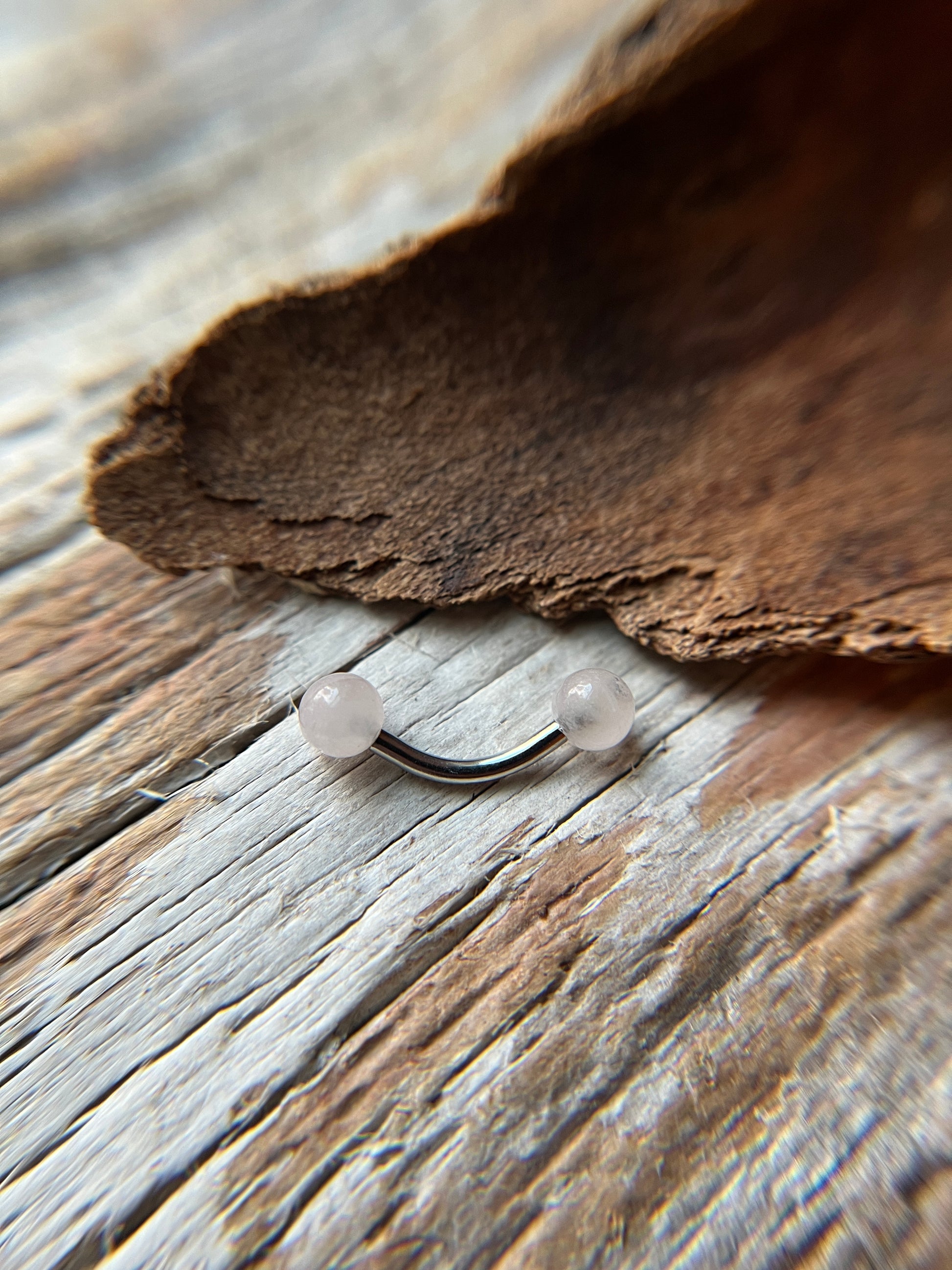 Rose Quartz Natural Stone 16G Rook / Vertical Lip Piercing Barbell