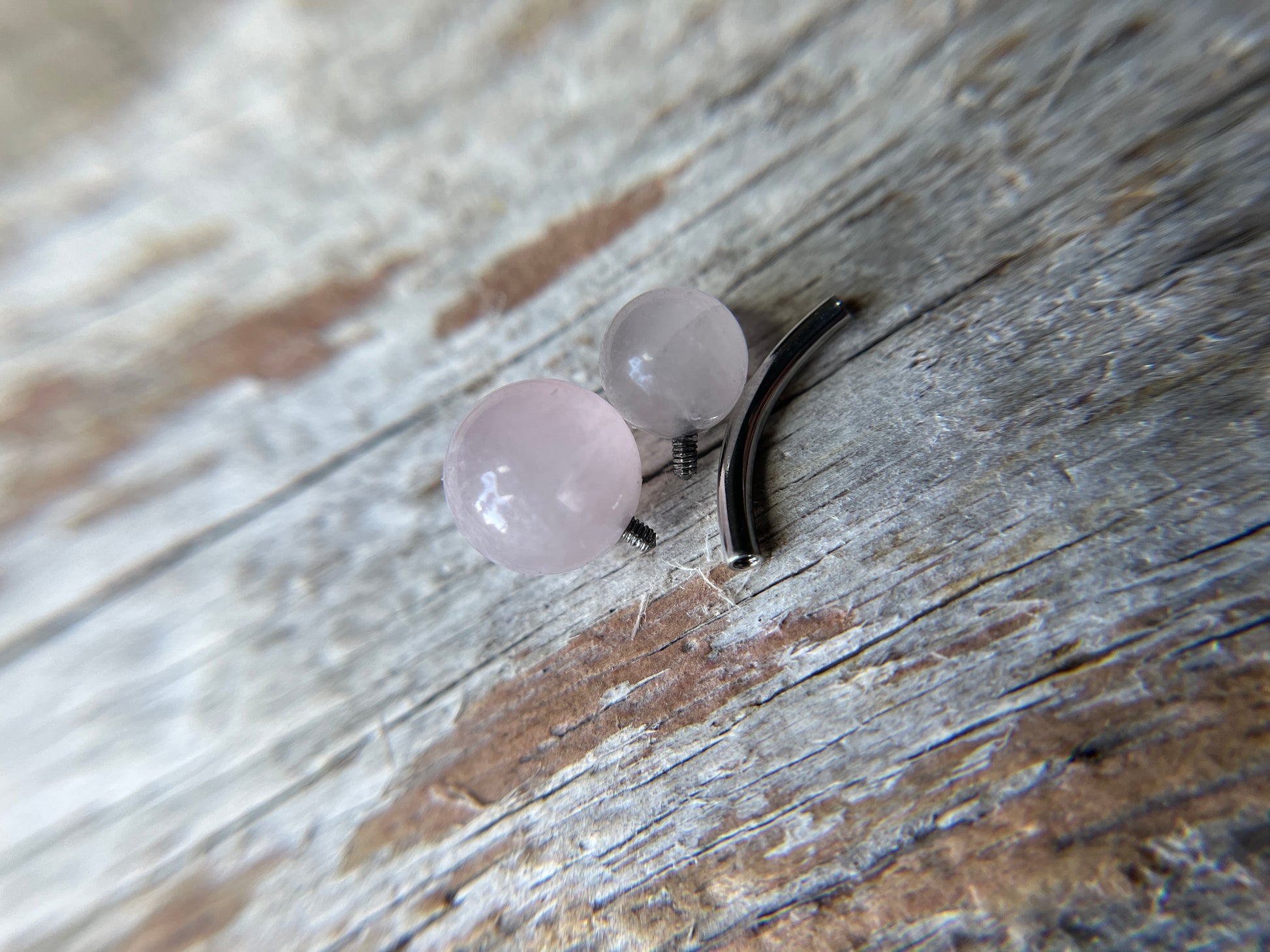 Rose Quartz Natural Stone Gold, Rose Gold or Black Titanium Finish Belly or VCH Barbell