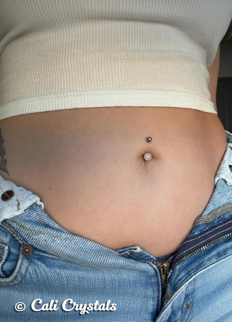 Internally Threaded Rose Quartz Natural Stone Belly or VCH Barbell