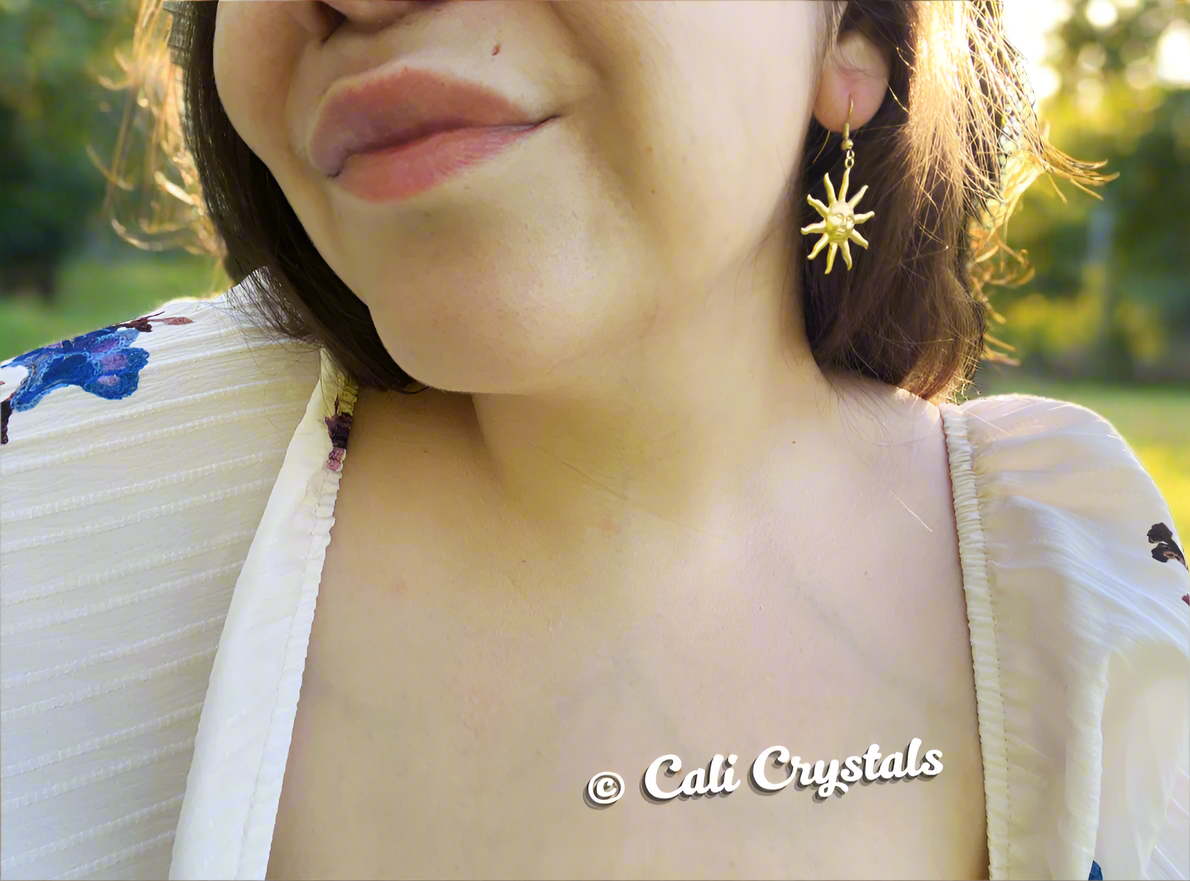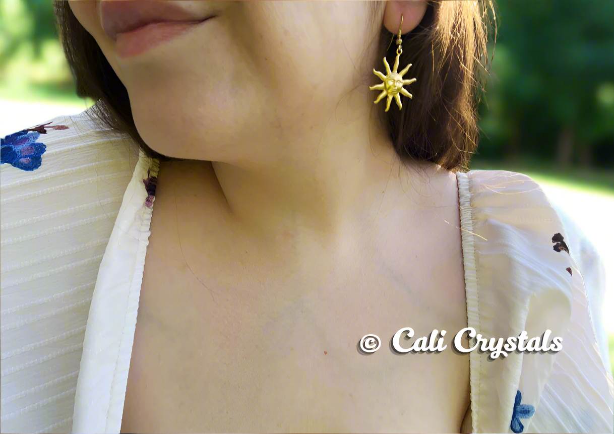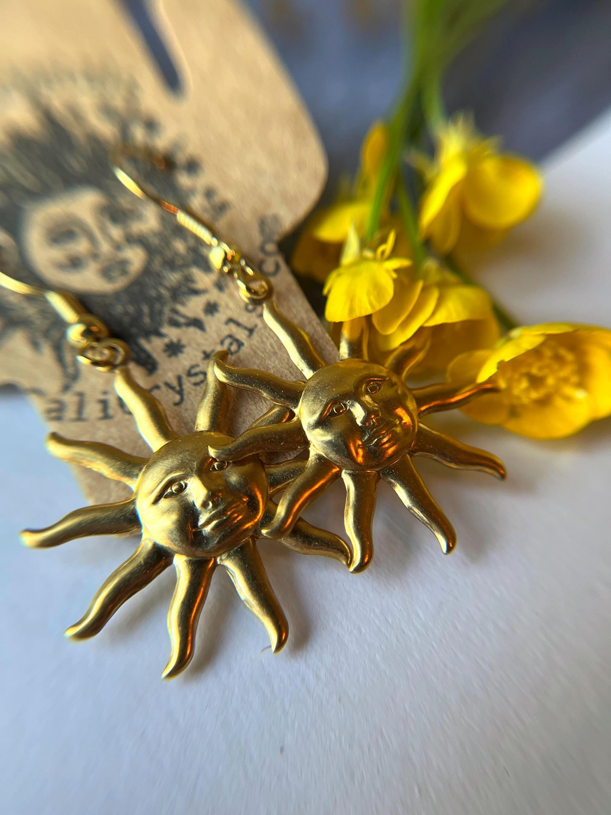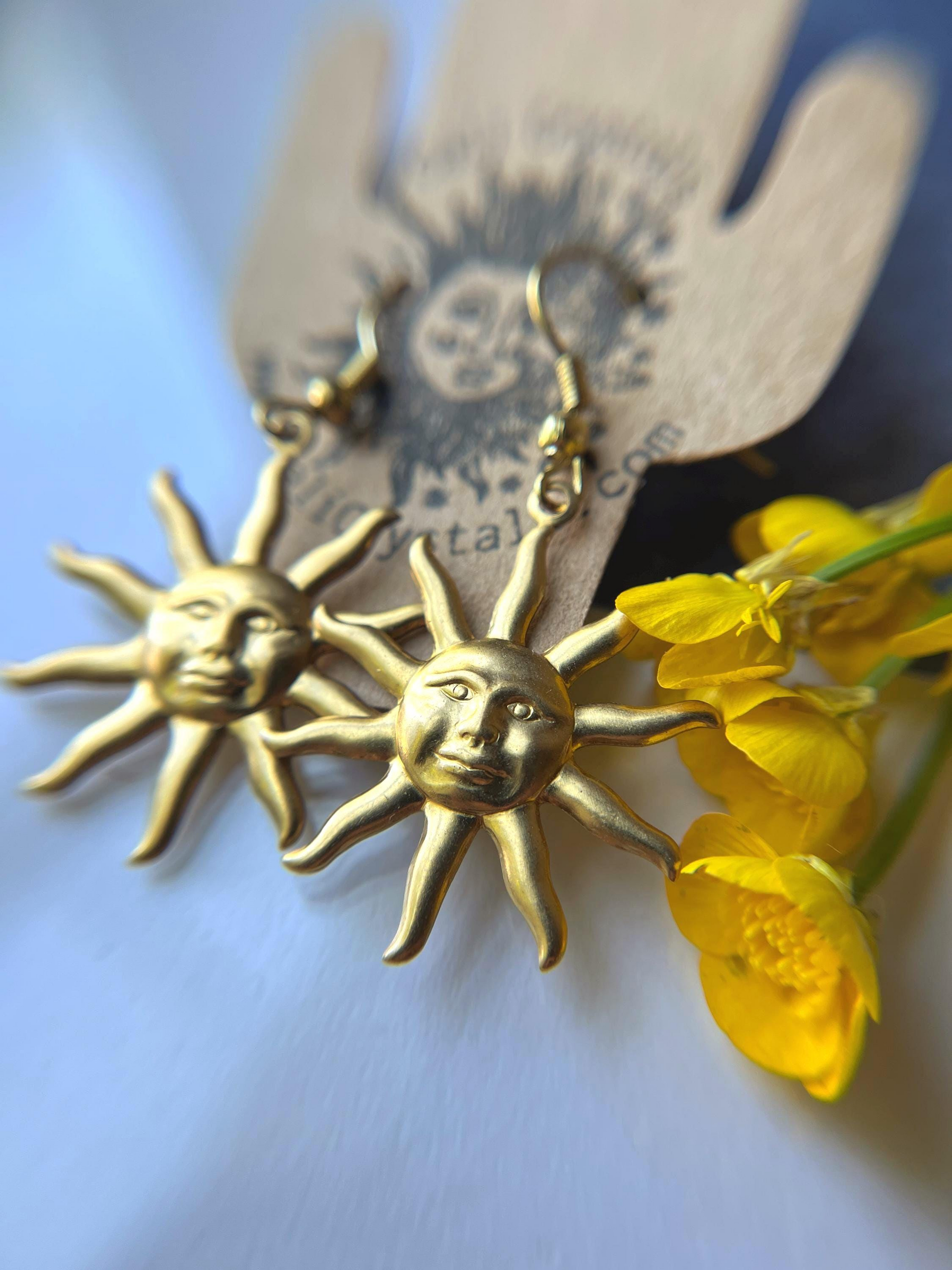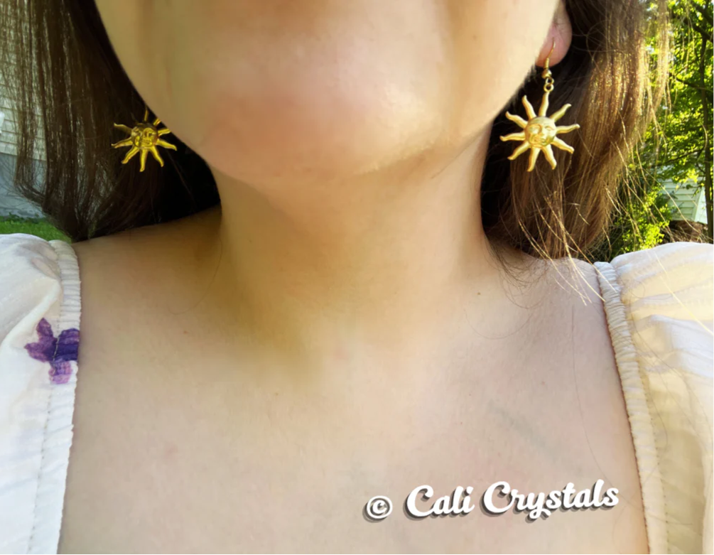 Materials: Alloy metal sun charms with a gold finish, and stainless steel earring hooks with the same gold finish. These earrings are lightweight and comfortable to wear! ♥
