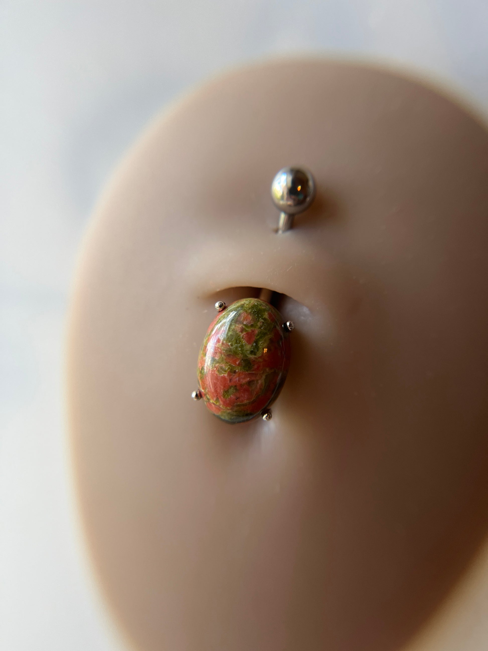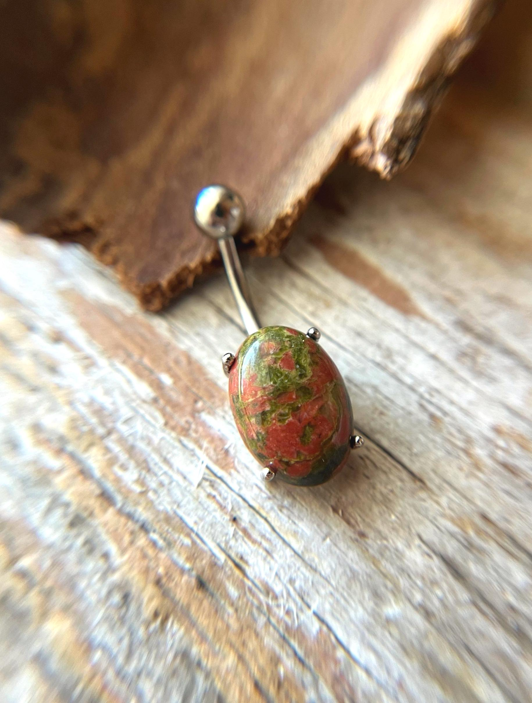 Unakite Natural Stone Pronged Oval Belly Ring 316L Surgical Steel